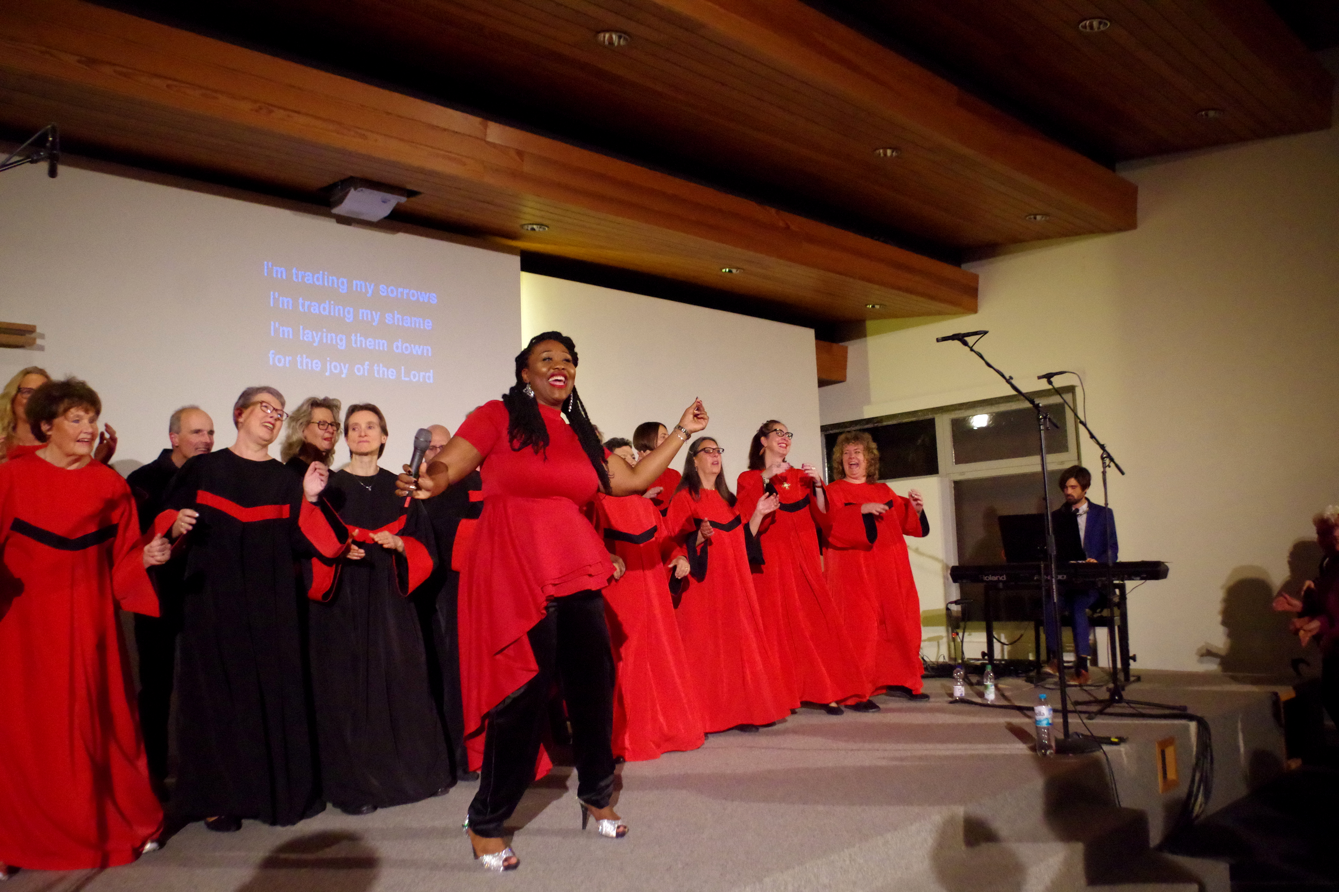 Unser neuer Chorleiter Paul Jungeblodt fasziniert durch seine mitreißende Art. Mit seiner Erfahrung als Gesangsdozent, Soul- und Reggae-Sänger oder auch als Rapper bringt er frischen Wind in unseren ambitionierten und sympathischen Chor. Wir lieben Arrangements, die gern auch mal von Mainstream abweichen, arbeiten leidenschaftlich an Sounds und genießen unseren Spaß am Groove ca. 2 x pro Jahr auf der Bühne.